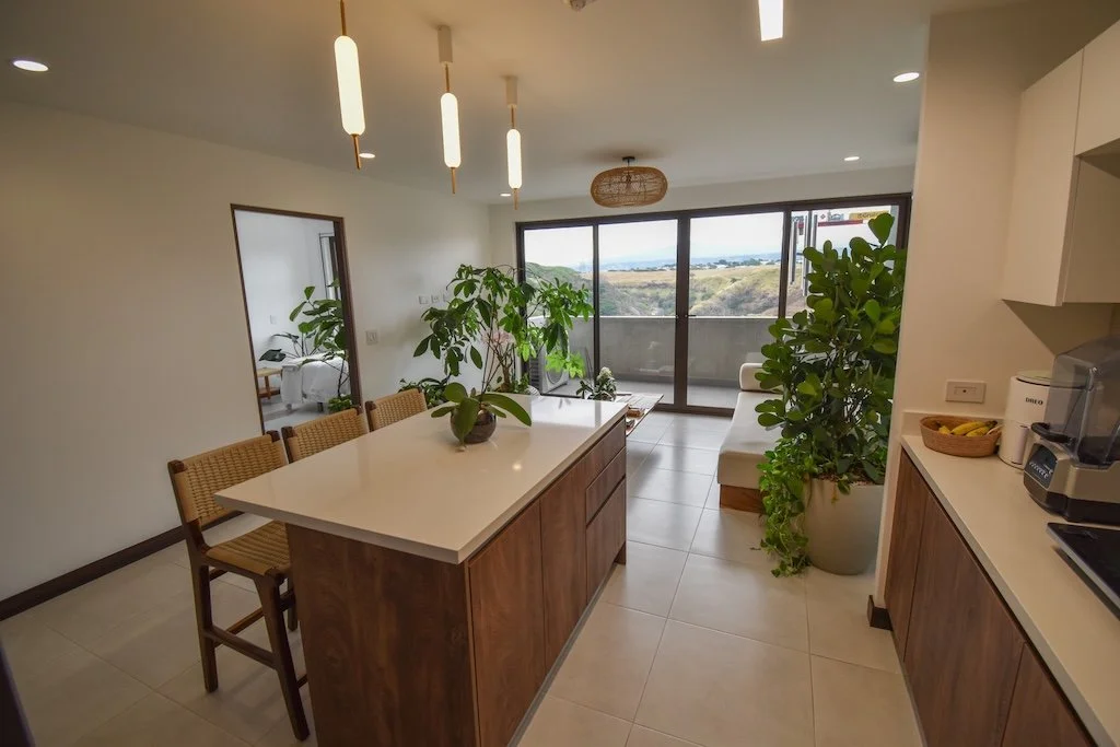 Cocina integrada con espaciosa isla (Incluye lava-platos y refrigeradora)
