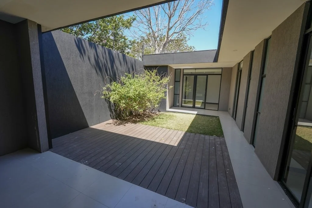 Jardín central con zacate